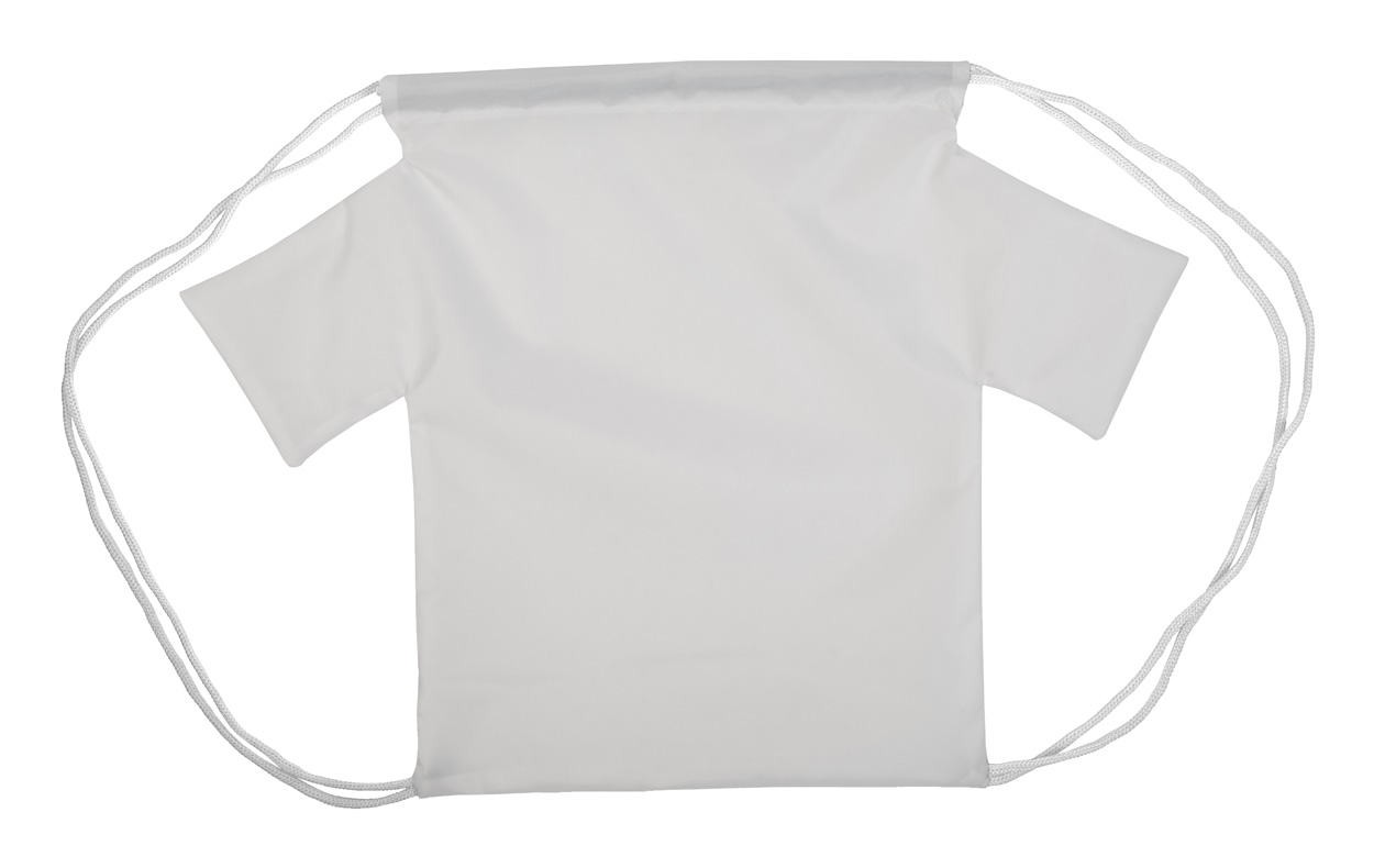 • na zakázku vyrobený vak na stažení šňůrkou ve tvaru trička s barevnými šňůrkami, 190T polyester.