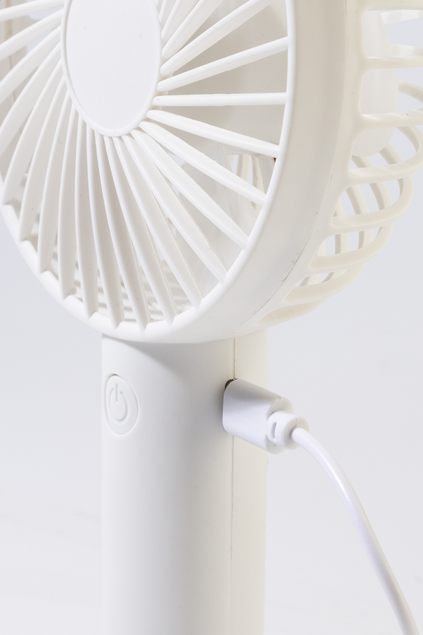 • Elektrický ruční větráček z recyklovaného PP s držákem na mobilní telefon, stolním stojanem a vestavěnou dobíjecí baterií s USB portem (800 mAh). Se 3 rychlostmi. Včetně nabíjecího kabelu s USB portem.