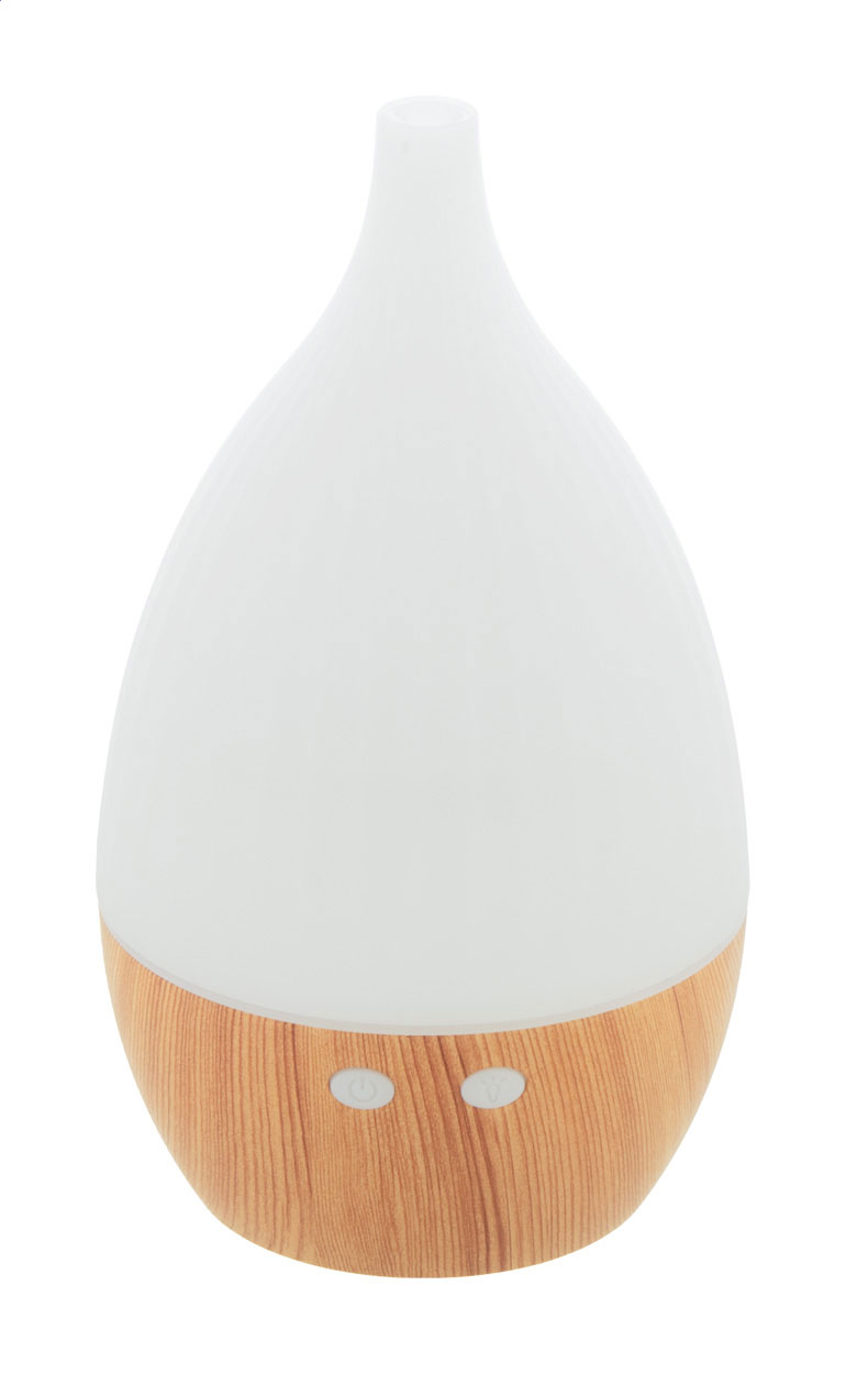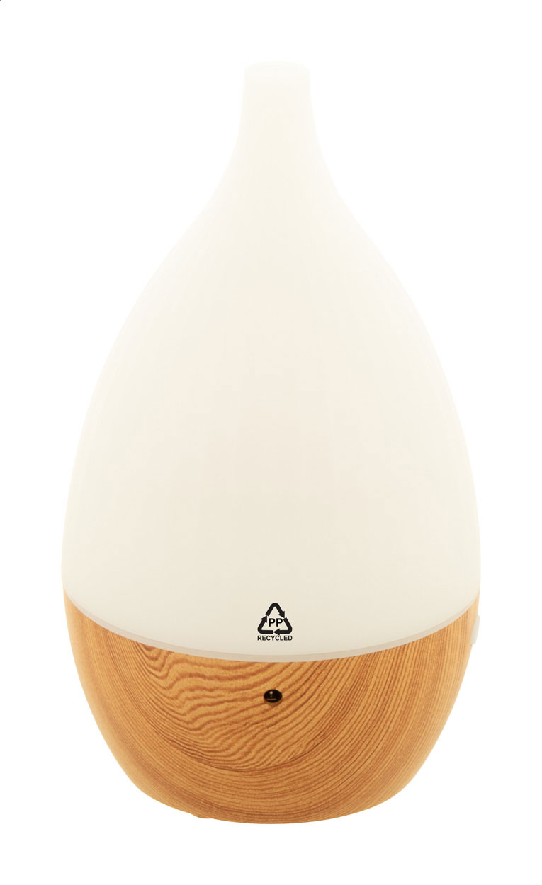 • Stolní zvlhčovač z recyklovaného PP plastu s dřevěným vzorem a vícebarevným LED světlem. Včetně USB nabíjecího kabelu.